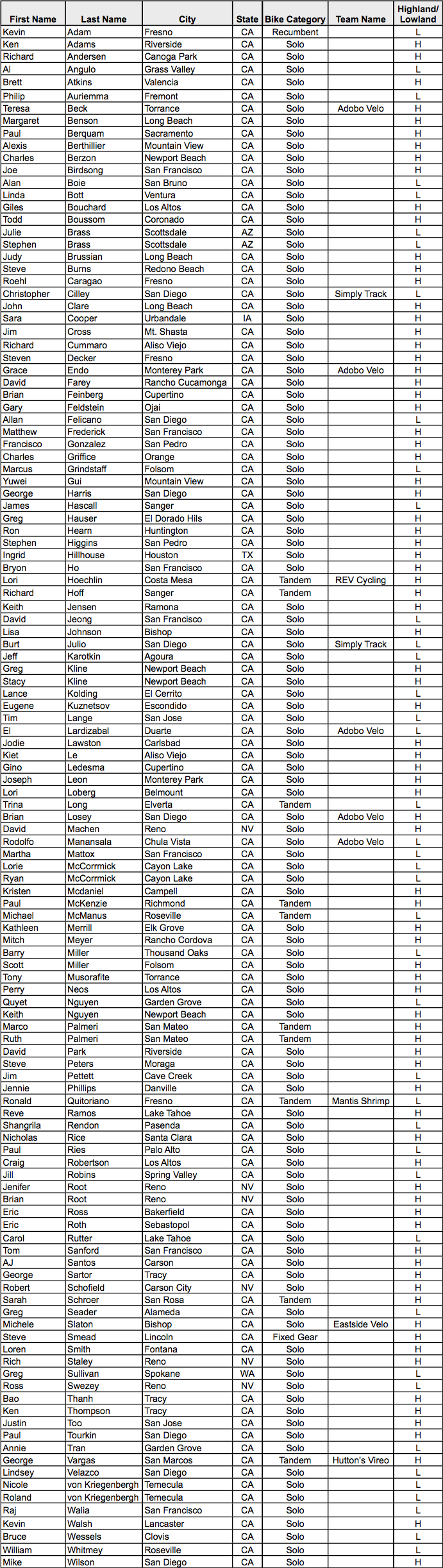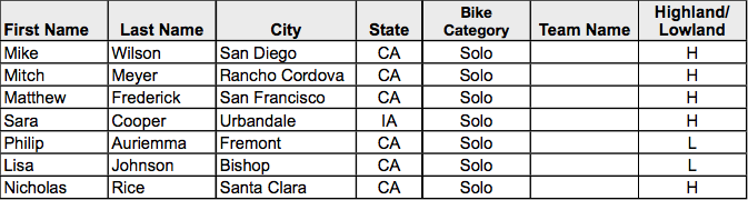 SUNDAY WHITE MOUNTAIN DOUBLE CENURY RIDER ROSTER